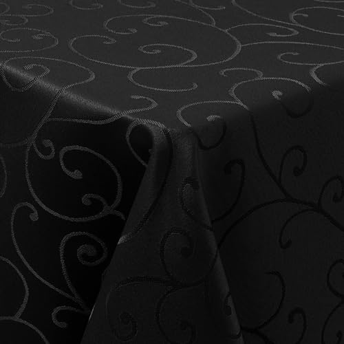 Homaxy Tischdecke Abwaschbar Rechteckig 130x130cm Polyester Tischtuch Tafeldecke Jacquard Tischwäsche Ornamente Schmutzabweisend Pflegeleicht, Schwarz
