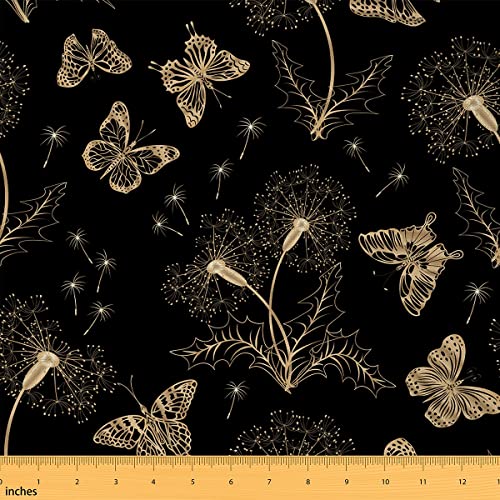 Schmetterlingsstoff Meterware Löwenzahn Polsterstoff Fliegende Flauschige Blütenblätter Pflanzenschmetterlinge Dekorstoff Rustikaler Blumenstoff für Bauernhäuser Polster Wohnakzente 184 x 150 (HxB)