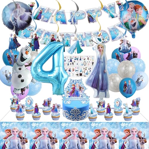 Geburtstagsdeko, 45 Stück geburtstagsparty deko Set, Geburtstagsparty deko 4 jahre, Cake Topper, Tattoo Kinder, Ballon, Tischdecke, Swirl Decoration, Geburtstag Banner Kit
