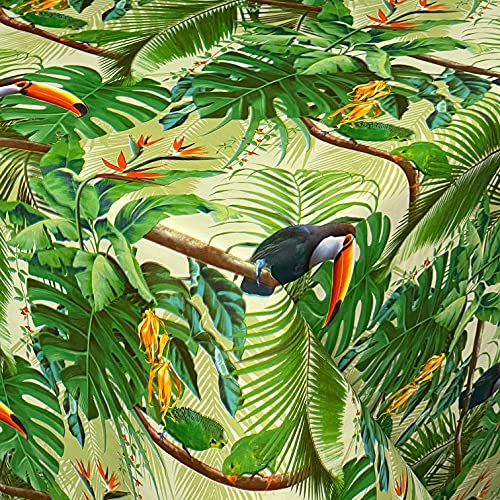 KEVKUS Wachstuch Tischdecke geprägt KE41510 Dschungel Tucan Palmen eckig rund oval (Rand: Paspel (mit Kunststoffband), 140 x 220 cm eckig)