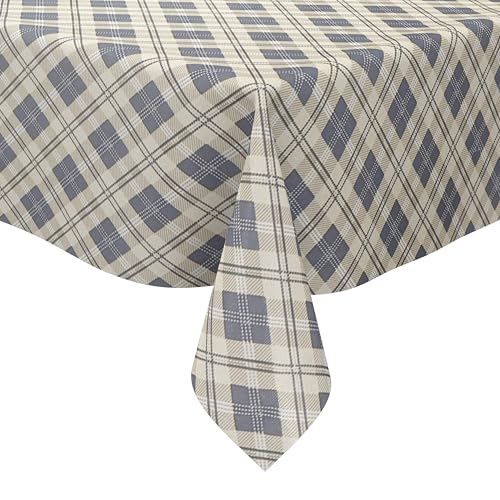 KEVKUS Wachstuch Tischdecke geprägt P1202-4 beige hellblau Raute Karo wählbar in eckig, rund und oval - Größe oval 140x280cm Schnittkante