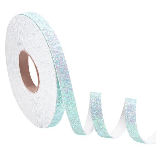 MAYJOYDIY 10m Mintgrün Glitzerband Geschenkband 9mm Pailletten Funkelndes Perlglanzband Glitzer Ballonband Für Geschenke Geburtstagsfeiern Feste Kunsthandwerk Ballondekoration