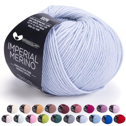 MeriWoolArt® Extrafeine Merinowolle garn zum Stricken oder Häkeln (50g, 100m) - Vielseitig für Hüte, Snoods, Blusen, Tuniken und warme Kleidung für Kinder und Erwachsene