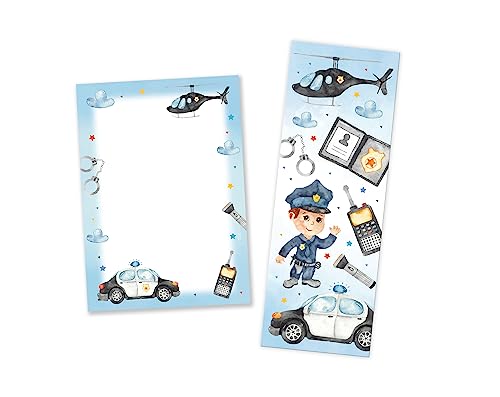 8 Lesezeichen + 8 Mini-Notizblöcke (A7-Format) Polizei Detektiv Mitgebsel für Kindergeburtstag Gastgeschenke für Kinder Jungsgeburtstag