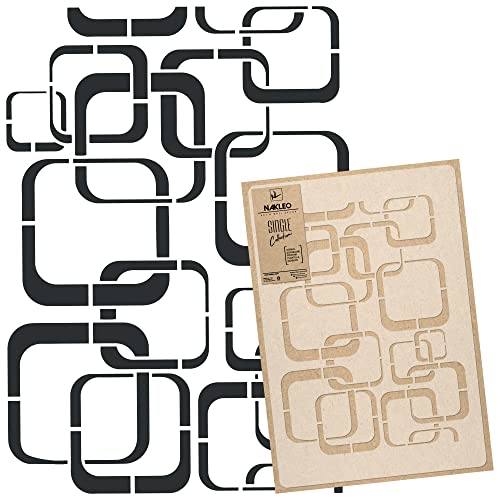 NAKLEO Geometrisch Große Malschablonen 43x64 cm, Retro Abgerundet Quadratisch Muster, Wiederverwendbare Kunststoff Wandschablone, Dekoration DIY Handwerk, Holz Wand Stoff Stein