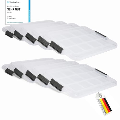 Novaliv 12x Aufbewahrungsboxen mit Deckel 10L transparente Boxen stapelbare Nestbar Storage boxes mit Clipverschluss Kunststoff BPA-frei 37x26x14 cm