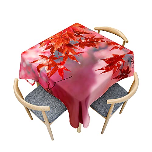 Odot Tischdecke Quadratisch Wasserdicht Polyester, Pflegeleicht Fleckschutz Abwaschbar 3D-Ahornblattdruck Rechteckig Tischdecke für Garten Küche Dekoration (90x90cm,Herbst 8)