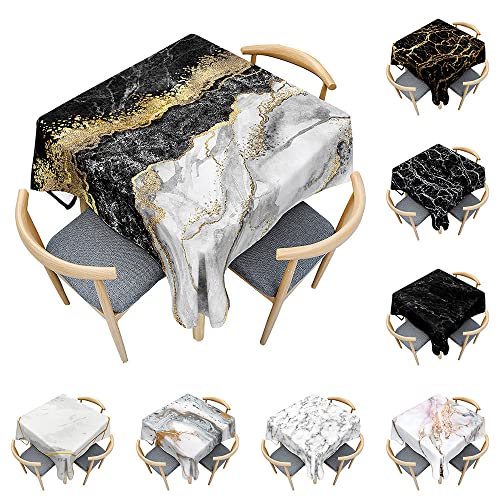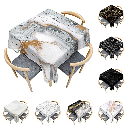Odot Tischdecke Quadratisch Wasserdicht Polyester, Pflegeleicht Fleckschutz Abwaschbar 3D-Schwarz-Weiß-Marmor Rechteckig Tischdecke für Home Küche Couchtisch Dekoration (Goldstaub,150x150cm)