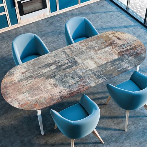 Odot Waschbare Elastische Runde Tischdecke Oval 3D Druck Abwaschbar Spanntischdecke Oval Gartentischdecke Outdoor Oval Tischdecke mit Gummizug, Modern Stil (91x152cm,Tinte)