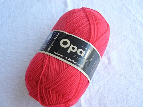 Opal Uni (425m) 4-fädiges Garn - Wollmischung, leuchtende Volltonfarben, Garn für warme Socken und Pullover, 5180 Rot, 1 x 100 g