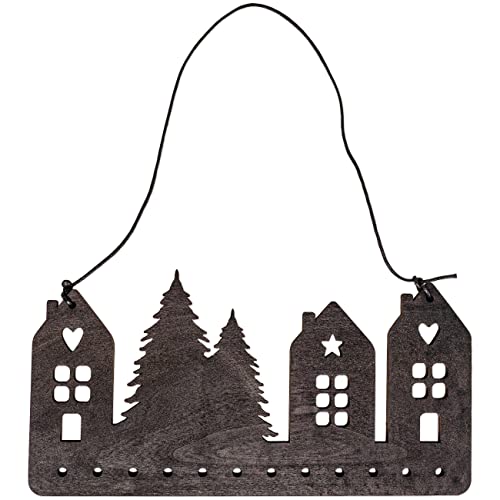 Papierdrachen Aufhängung für Adventskalender Geschenke - aus Holz - in naturfarben und schwarz - Weihnachtskalender zum Selbstbasteln - kombinierbar mit Stoffsäckchen - Dorf - Set 2