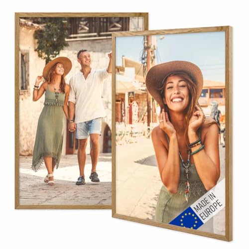 PHOTOLINI Bilderrahmen Holz 40x50 Eiche, Holzbilderrahmen Made in EU, 2er Set, bruchsicheres Acrylglas, zum Aufhängen, extra Zubehör - für Ihre liebsten Fotos & Bilder