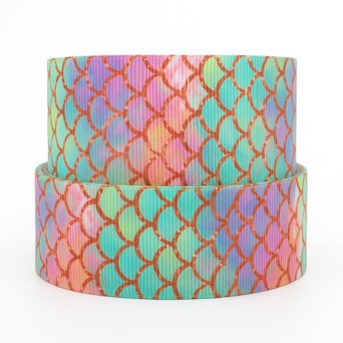 Ripsband mit Meerjungfrauenschuppen-Motiv, 2 m x 22 mm, Roségold & Pastell-Regenbogen-Design, für Bastelarbeiten, Geschenkverpackungen, Kuchendekoration, Ballonarrangements und Partydekoration