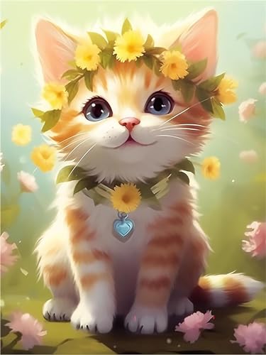 Ruohuo Diamond Painting Katzenblume,5D DIY Diamond Painting 10x15cm,Katzenblume Diamond Painting Erwachsene Bastelset, Full Drill Square Diamant Art Painting Stickerei Set, Zimmer Deko Wohnzimmer -94