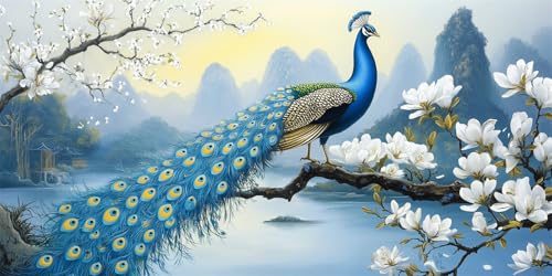 Diamond Painting Tierischer Pfau, 5D DIY 50x60cm, Erwachsene Bastelset, Full Drill Square Diamant Art Stickerei Set, Zimmer Deko Wohnzimmer -31