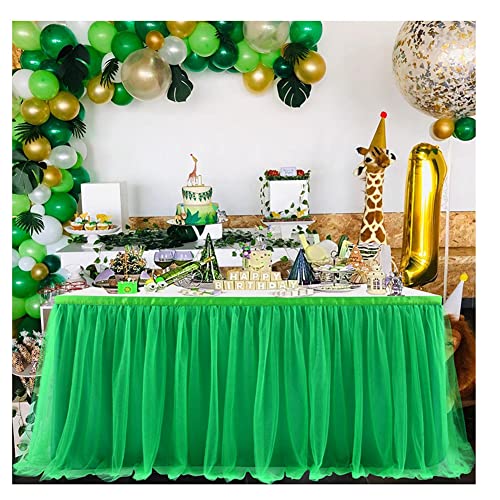 SHTGOI Tüll Tischrock Tütü Tischröcke 427 x 77 cm Gaze Tisch Tischdecke Tischdekoration Tisch Rock für Hochzeit Geburtstag Neujahr Babyparty Candy Party Dekoration Grün