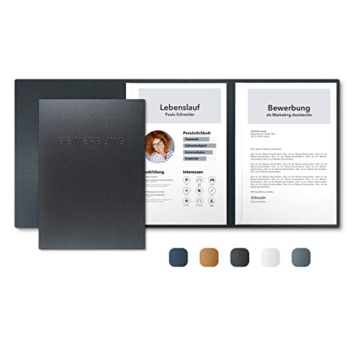 2 Stück 3-teilige Bewerbungsmappen Anthrazit Metallic mit 2 Klemmschienen - Premium-Qualität mit hochwertiger Prägung BEWERBUNG - direkt vom Hersteller STRATAG