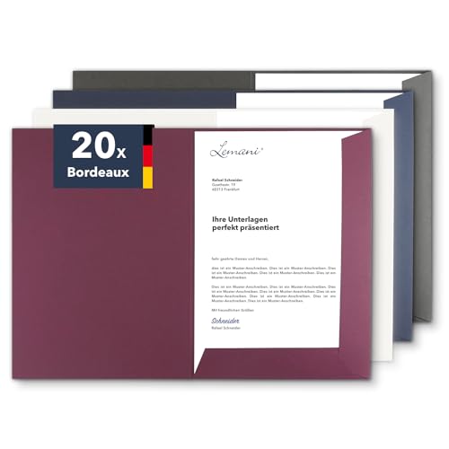 Präsentationsmappe A4 in Bordeaux (20 Stück) - sehr stabiler 375 g/m² Premium-Karton - direkt vom Hersteller STRATAG - Dokumentenmappe Mappe A4 Angebotsmappe Pappmappe Projektmappe