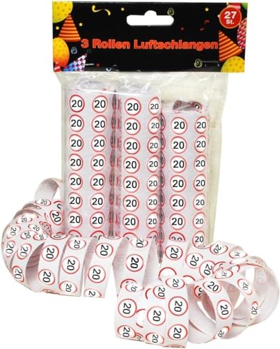 Udo Schmidt 11502 Luftschlangen-3 Rollen je 9 Stk. -Verkehrszeichen rot/weiß-Zahl: 80