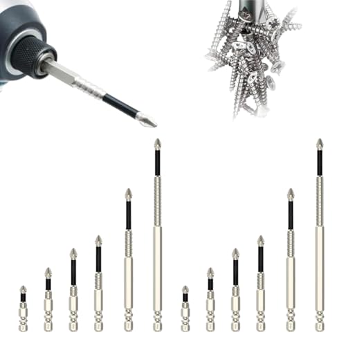 Tidepick Hochmagnetischer Schraubendreher-Bohrer-Satz, Starke magnetische Haltbarkeit Schraubendreher-Bohrer-Set, Hochmagnetischer Schraubendreher-Bohrer 25 50 65 70 90 150mm (12pcs)