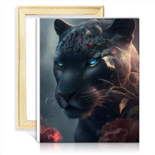 TANGFEIY Malen nach Zahlen, Schwarzer Panther, Ölgemälde-Set für Erwachsene und Anfänger, Leinwand, mit Pinseln und Acrylpigmenten, Kunstwerk für die Heimdekoration, ohne Rahmen (40 x 50 cm)