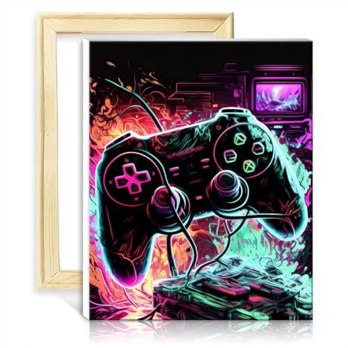 TANGFEIY Malen nach Zahlen, Gamecontroller, digitales Ölgemälde-Set zum Selbermachen auf Leinwand mit Pinseln und Acrylfarbe auf Haus-Art-Deco-Kunsthandwerk, ohne Rahmen (30 x 40 cm)