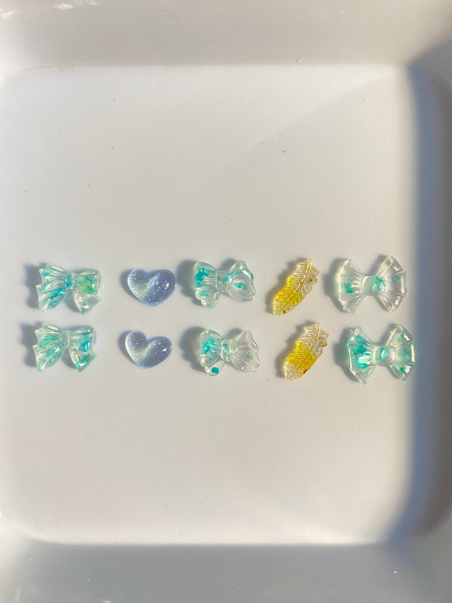 Set Für Zehn Nägel 3D Nagel Dekorationen, Diy Basteln N3070 Charms Blau/Gelb Serie