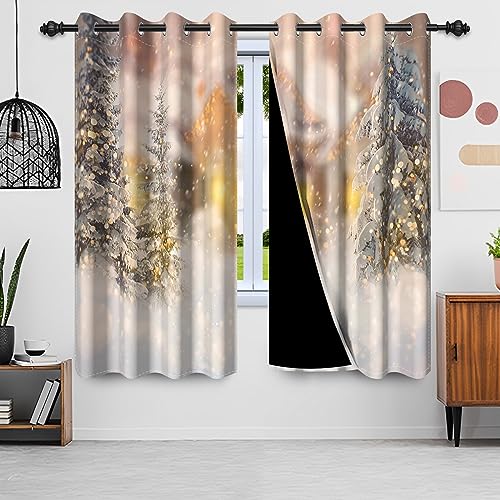 Uiiooazy Gardinen Weiß, Vorhänge Waldmotiv Weihnachten Schneeflocke Landschaft Thermogardinen Blickdicht mit Ösen Verdunklungsvorhänge für Wohnzimmer Schlafzimmer Kinderzimmer, 2er Set, 140Bx225Hcm