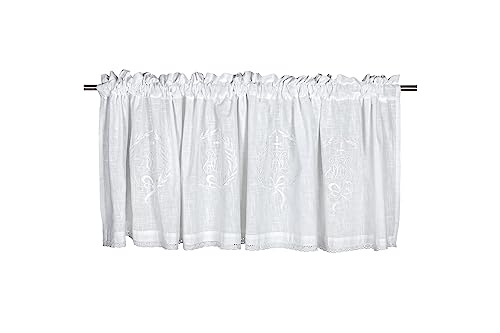 Unbekannt Scheibengardine Kurzgardine Bistrogardine Gardine Vorhang 'Emmy' 55 x 250 cm (HxB) Bestickt mit Monogramm Spitze weiß Baumwolle Landhaus Shabby French Vintage Retro Antik Nostalgie