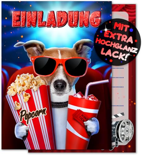 12x Kino EINLADUNGSKARTEN KINDERGEBURTSTAG Junge Mädchen + 12x Umschläge - die Cinema PARTY Karten sind die Kino EINLADUNG für Jungen Kinder GEBURTSTAG Filmabend GEBURTSTAGSEINLADUNG Film Popcorn