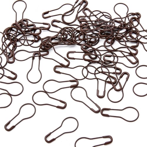 Wambere 100 Stück Sicherheitsnadeln,Klein Birne Pins Calabash Pin Maschenmarkierern Bunte Sicherheitsnadeln Nähzubehör Kürbis Birnenform Pins für Kunsthandwerk Nähen Kleidung Kunst,Braun