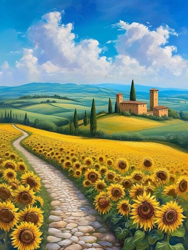 Sonnenblume Landschaft Malen Nach Zahlen Kinder, Bastelset Erwachsene Frauen Paint by Numbers, DIY Faltenfreie Leinwand, mit Pinseln und Acrylpigment-Kunstwerk Set, Zimmer Deko Geschenk 20x30cm W-912