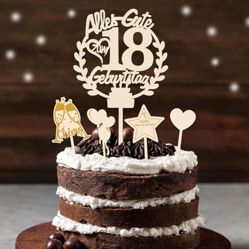 Torten Deko 18 Geburtstag Holz Kuchendeko Junge Mädchen Happy 18th Birthday Cake Topper Alles Gute zum Geburtstag 18 Jahre Kindergeburtstag Kuchen Topper 18 Geburstagstorte Deko
