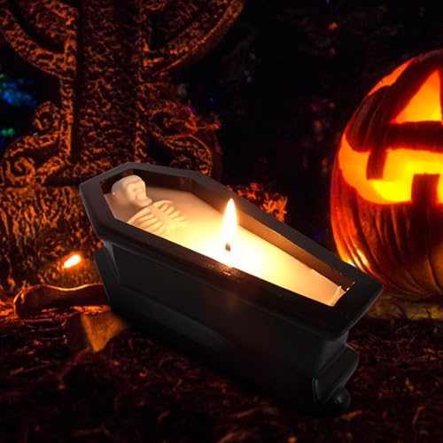 Halloween Skelett Kerzen Dekoration Halloween 3D Skelett Duftkerze, Sarg Skelett Kerze, Gothic Schädel Kerzen, Herbst Heimdekoration Sojawachs Aromatherapie, Halloween Partyzubehör Tischdekoration
