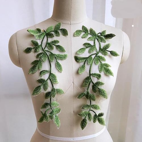 Yulakes 1 Paar Green Leaf Venise Lace Trim Green Leaves Aufnäher Appliqué Patches Trimmen Stickerei Vine Dekorative Patches für Kostüm Craft Projects