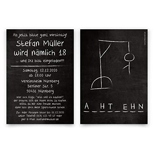 10 x Einladungskarten zum Geburtstag 18 Jahre Geburtstagseinladungen - Galgenmännchen