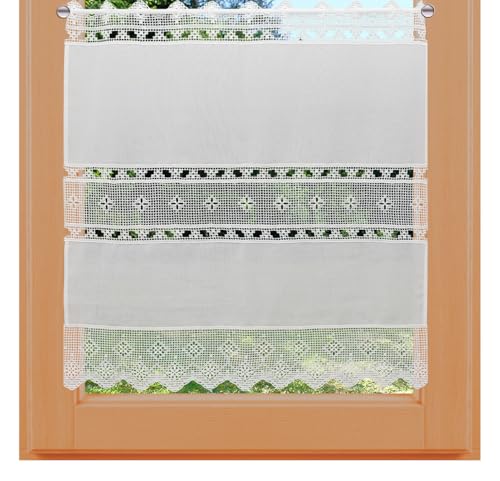 Spitzengardine Mia Vogtländische Spitze Feenhaus-Scheibengardine in weiß | klassisch-zeitlose Kurzgardine mit Ornamenten |Bistrogardine für Wohnzimmer, Küche, Bad | Panneaux Höhe x Breite 45 x 160 cm