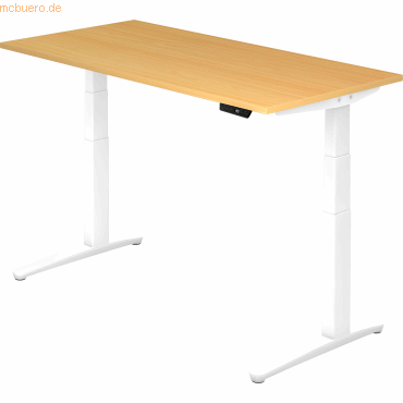 HAMMERBACHER XBHM16 elektrisch höhenverstellbarer Schreibtisch buche rechteckig, C-Fuß-Gestell weiß 160,0 x 80,0 cm