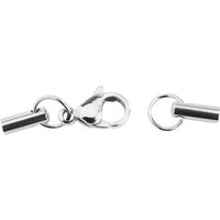 Ein cooler Look für deine selbstgemachten Schmuckstücke - mit dieser Edelstahl Verschlussgarnitur verleihst du deinen Armbändern und Ketten kühle Eleganz. Das moderne Design sorgt für einen stilvollen Hingucker und macht dein DIY-Accessoire zum absoluten Highlight. Im Vergleich zu Silber ist Edelstahl nicht nur robuster, sondern auch weniger anfällig für Anlaufen. Dadurch behalten deine Schmuckstücke auch nach längerem Tragen ihren schönen Glanz. Besonders geeignet ist das Material auch für Allergiker, da es kaum allergische Reaktionen auslöst. Die Edelstahl Verschlussgarnitur eignet sich für jede Art von Schmuckkreationen. Du kannst deiner Kreativität also freien Lauf lassen und einzigartige und individuelle Schmuckstücke designen. Bestelle noch heute diesen hochwertigen Schmuck-Verschluss und kreiere deinen eigene Ketten und Armbänder. Länge: 1.1 cm Material: Edelstahl
