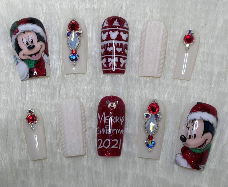 Bitte achten Sie vor dem Kauf auf Ihre Größe, da ich eine Bestellung, die nicht passt, nicht ersetzen oder zurückerstatten werde. Wenn sie sich nicht sicher sind, können Sie zuerst ein Größenpaket erwerben. Mickey Christmas Press On Nails