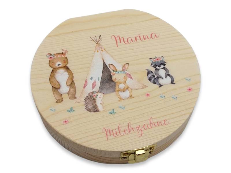 Milchzahndose Personalisiert "Boho Waldtiere"/Milchzahnbox Aus Holz