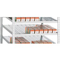 Fachboden für Schrägbodenregal von SCHULTEErweitern Sie Ihr SCHULTE Schrägbodenregal um einen oder mehrere Fachböden mit den Maßen 130,0 x 50,0 cm (BxT). Dieser Fachboden aus verzinktem Metall ist bis 150,0 kg belastbar und kann einfach in Ihr Schrägbodenregal eingesteckt werden. Die VorteileDurch die schräge Anordnung des Fachbodens haben Sie den Inhalt im Schrägbodenregal gut im Überblick und können bequem zugreifen, weil die gelagerten Produkte immer nach vorne nachrutschen. Der silberne Fachboden selbst hat eine Lochung für horizontale Trennführungen. So können Sie die Fachböden jederzeit individuell unterteilen und die Teilung immer wieder anpassen.