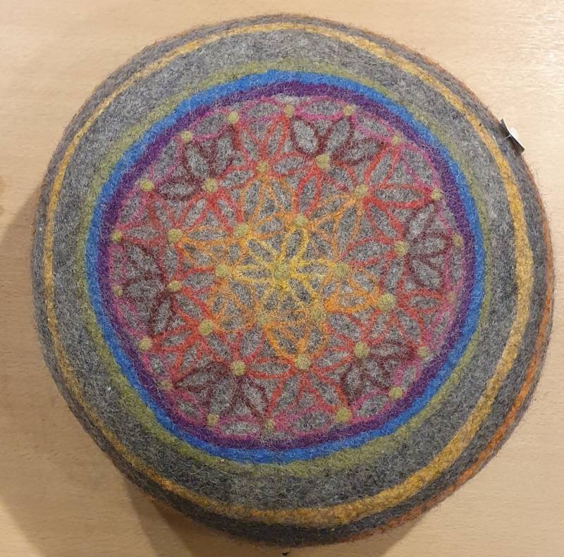 Aus feinster Merinowolle handgefilztes Yoga/Meditationskissen mit der Blume des Lebens in Regenbogenfarben, gefüllt mit Dinkelspelz und Lavendelblüten. Wunderschönes Unikat, gerne filze ich auch ein Kissen nachIhren Farbwünschen, bitte einfach anschreiben :-) Das Kissen wiegt ca. 2,5 Kg Yogakissen, Blume Des Lebens