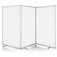 Die magnetoplan Trennwand Large 1112051, transparent 361,0 x 180,0 cm mit Rollen, 1 St. – teilen Sie Ihre Fläche sinnvoll aufMit der magnetoplan Trennwand Large 1112051, transparent 361,0 x 180,0 cm mit Rollen, 1 St. schaffen Sie flexibel und auf die einfachste Weise individuelle Arbeitsbereiche. Anders als bei einem abgeschlossenen Büroraum können die Mitarbeiter dennoch jederzeit ganz einfach miteinander in Kontakt treten, wenn es etwas zu klären gibt.Wichtige Eigenschaften im ÜberblickZudem erhalten Sie folgende Ausführung: Mit drei fest verbundenen, besonders lichtdurchlässigen Elementen aus mattiertem Polycarbonat. Mobil durch drehbare Füße mit 8 Laufrollen.Farbe = TransparentBeim Material handelt es sich um Acryl. Umrandet wird das Modell von einem Rahmen aus Aluminium. Das Modell ist transparent und ermöglicht somit eine uneingeschränkte Sicht und Kommunikation. Außerdem gewährleistet die transparente Abtrennung einen ungehinderten Lichteinfall, so dass die gewohnten Lichtverhältnisse bestehen bleiben.Was sind weitere interessante Eigenschaften?Damit wirklich alles passt, sind auch diese Eigenschaften wichtig: Die Stellfläche der magnetoplan Trennwand Large liegt bei 361,0 x 180,0 x 37,0 cm, die Wandmaße bei 361,0 x 180,0 cm (BxH) und die Aufstellhöhe bei 180,0 cm. Außerdem hat sie ein Gewicht von 15,4 kg.Besonders flexibelSie können die magnetoplan Trennwand Large immer dorthin schieben, wo sie gerade benötigt wird. Hierfür verfügt dieses Modell über Rollen. Das macht die Nutzung besonders flexibel und komfortabel.Treffer?Dann können Sie die magnetoplan Trennwand Large 1112051, transparent 361,0 x 180,0 cm mit Rollen, 1 St. bequem in unserem Online-Shop bestellen.