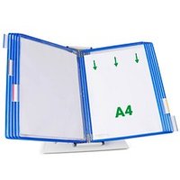 Mit dem tarifold Sichttafelsystem 434101 DIN A4 blau mit 10 St. Sichttafeln sind Sie bestens informiertMit dem tarifold Sichttafelsystem 434101 DIN A4 blau mit 10 St. Sichttafeln schaffen Sie Ordnung und Übersicht direkt an Ihrem Arbeitsplatz. Ihre wichtigen Informationen sind darin ideal geschützt und durch einfaches Durchblättern haben Sie sie schnell zur Hand. Stundenlanges Suchen gehört der Vergangenheit an.10 Tafeln inklusiveUm bequem arbeiten zu können, kann das tarifold Sichttafelsystem am Tisch positioniert werden. So benötigen Sie zum Umblättern Ihrer Informationen nur eine freie Hand und brauchen Ihre Arbeit nicht mal zu unterbrechen. Sie erhalten 10 Sichttafeln mit dazu. Falls diese nicht mehr ausreichen, dann können Sie den Ständer jederzeit erweitern. Dadurch haben Sie maximale Flexibilität und Ihre Übersichtspläne, Arbeitsanweisungen, Preislisten oder Produktbeschreibungen finden immer den richtigen Platz.Hochwertiges MaterialDie Tafeln aus kunststoffummanteltem Stahldraht gewährleistet einen langfristigen Schutz vor Abnutzung, Schmutz oder Feuchtigkeit. Den Tafeln bietet ein stabiles Gestell aus Metall einen festen Halt. Die Sichttafeln werden durch einen Rahmen in der Farbe blau umfasst. So sorgen Sie direkt für eine bessere Ordnung. Zum Beispiel können Sie die Farbe einem bestimmten Projekt oder einer Abteilung zuordnen.Für welches Format?Damit das Produkt zu Ihrem Verwendungszweck passt, muss das Format stimmen. Mit Unterlagen bis zum DIN A4-Format liegen Sie bei diesem Artikel daher genau richtig.Treffer?10 Sichttafeln, 5 Sichtreiter und beschriftbare Einsteckschilder erhalten Sie bei Lieferung des tarifold Sichttafelsystems 434101 DIN A4 blau mit 10 St. Sichttafeln inklusive.