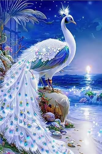 Diamond Painting Tierischer Pfau, 5D DIY 50x70cm, Erwachsene Bastelset, Full Drill Round Diamant Art Stickerei Set, Zimmer Deko Wohnzimmer -31