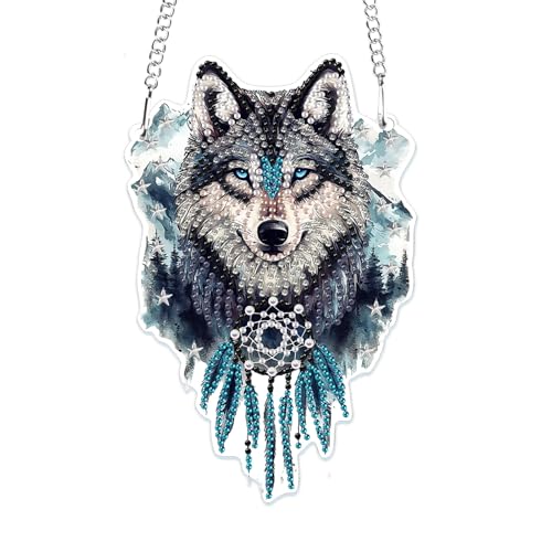 MOGTAA 5D Wölfe Diamond Painting Anhänger, Tiere Diamond Painting mit Kette Kinder Erwachsene, Diamant Painting Fensterbilder, Hängende Ornament Bastelset Set für Wand Und Eingang Decor