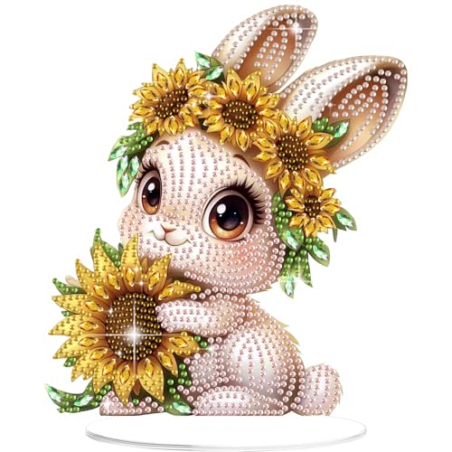GHHKUD Kaninchen Diamond Painting Desktop Deko für Erwachsene Kinder, Tiere Diamond Painting Tischdekoration, 5D Diamant Painting Bilder, DIY Diamant-Malerei Deko für den Schreibtisch, Box Paket
