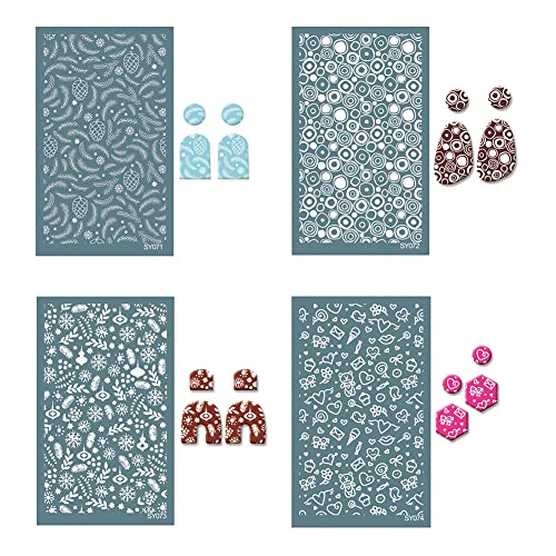 Herbests 4Stücke Siebdruckschablonen für Polymer Clay,15cmx9cm wiederverwendbares Tonschablonen Nicht klebende Netzschablonen Transfer Waschbare Schablonen für Polymer Clay Schmuck Ohrringherstellung