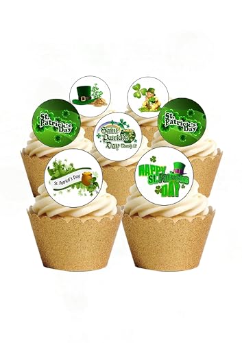 24 vorgeschnittene Kuchendekorationen aus essbarem Oblatenpapier mit St. Patricks-Day-Motiv Die Bilder sind wie abgebildet Diese Kuchendekorationen sind vorgestanzt in 40 mm Kreisen und können direkt auf Ihren Kuchen gelegt werden Perfekt, um Ihnen zu helfen, St. Patricks Day zu feiern Vollständig essbar – Zutaten aus Oblatenpapier – Wasser, Sonnenblumenöl und Kartoffelstärke, Hersteller: Top That